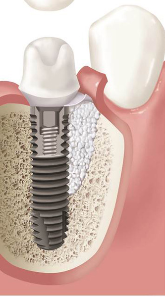 Velmi často je pro zavedení implantátu vzhledem k nedostatku kosti provést její doplnění tzv. augmentaci. Naše zařízení je zaměřené na doplnění nedostatečného množství kosti a používá celou řadu moderních postupů metod a matriálů. Velký význam pro úspěšné doplnění kosti hraje i dostatečné množství měkkých tkání – sliznice, která musí dodané množství kosti dokonale překrýt a nesmí ani tlakem způsobit jeho resorpci.