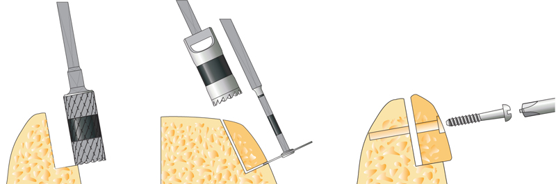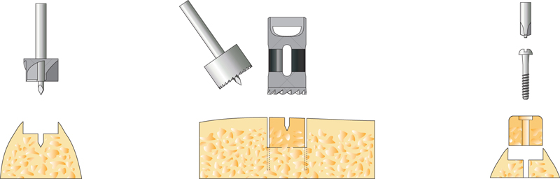 - Postupné nasazování nástrojů se zvětšujícím se průměrem vede k rozšiřování a zahušťování kosti
